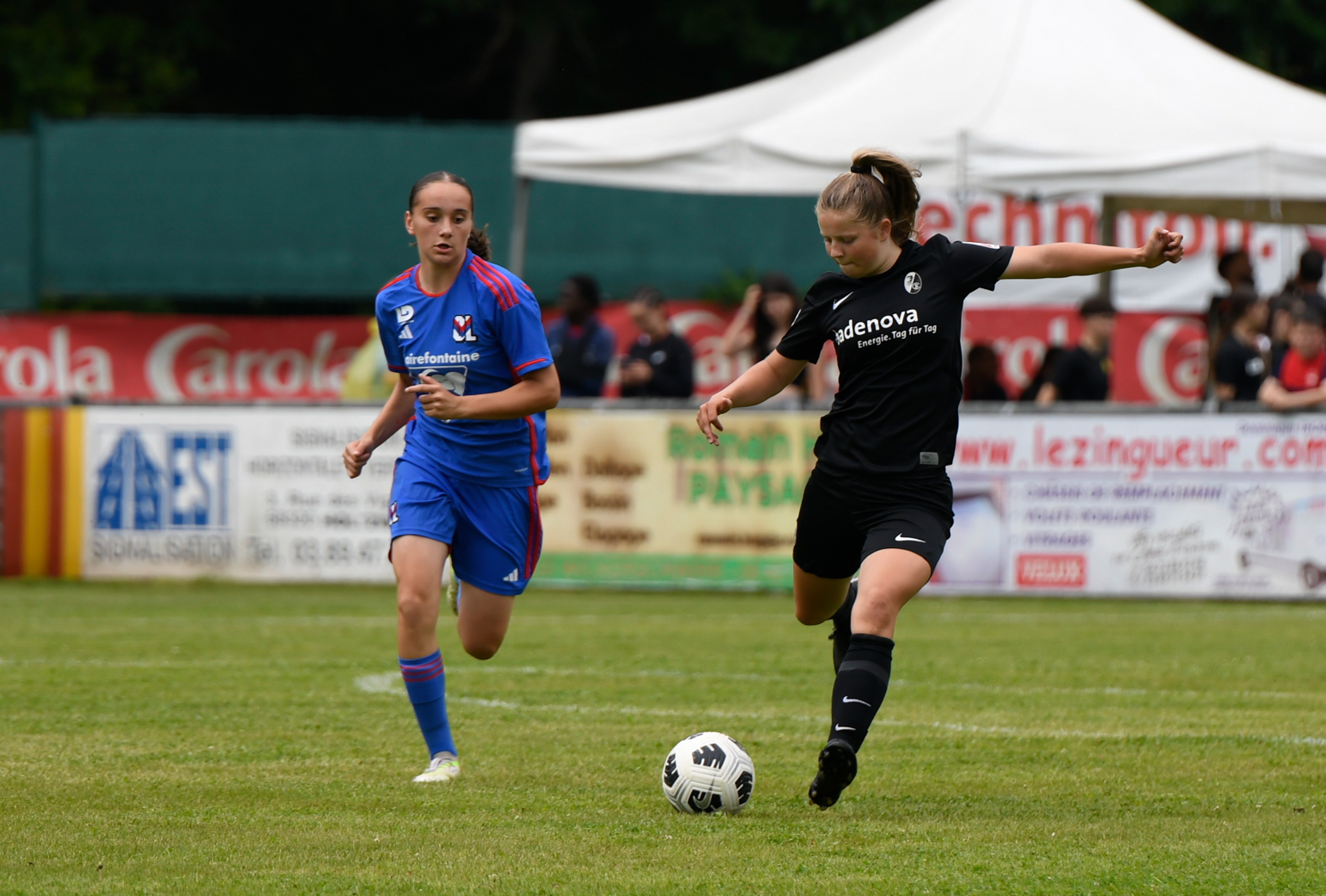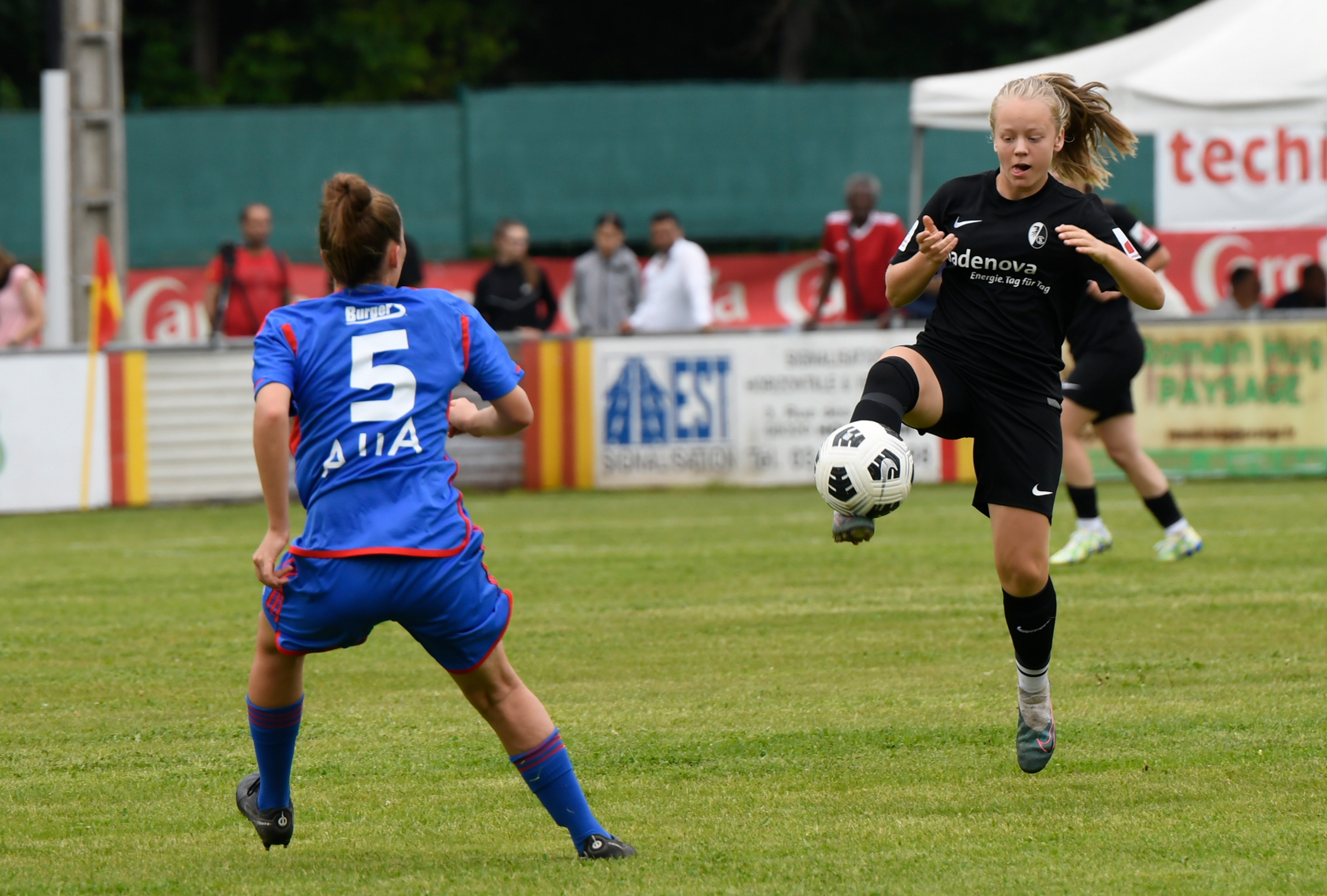 évolue de longue date dans l élite du football Allemand en Bundesliga. Frontaliers, les rouges et noir viennent en voisin à Holtzwihr se mesurer au différents styles de jeux des equipes Françaises , Suisses Italiennes de l'Alsace Women's Cup.@sc_freiburg_frauen