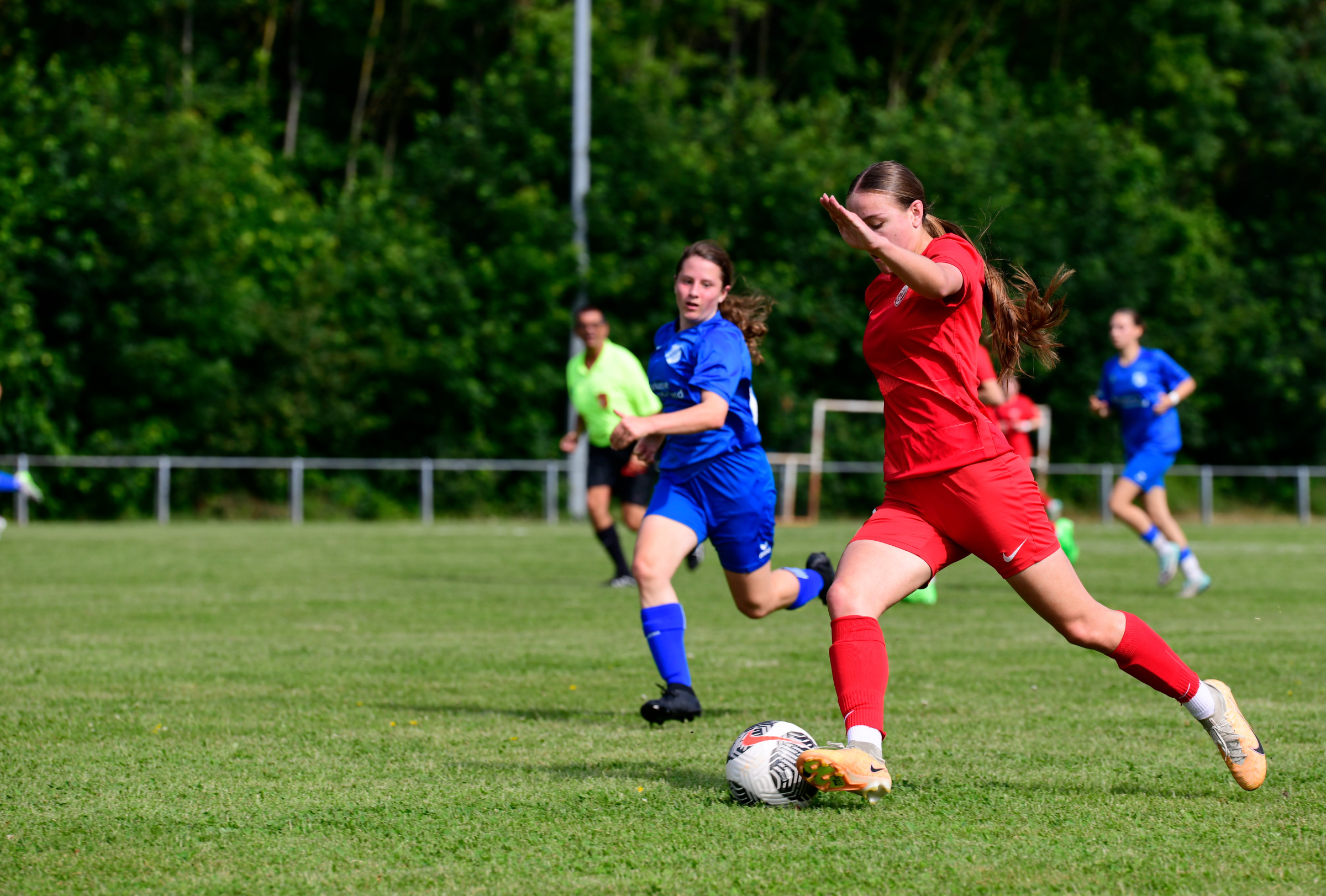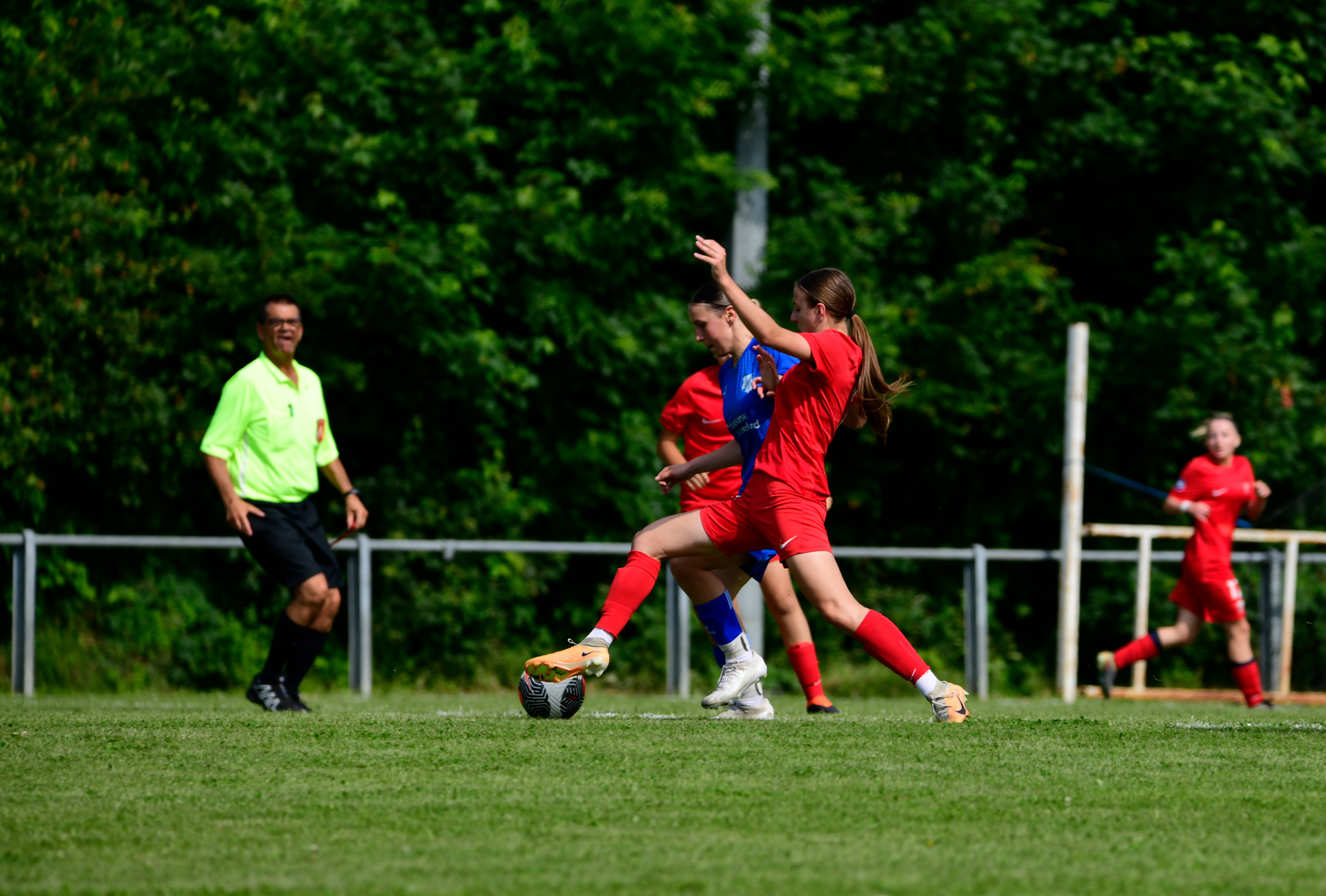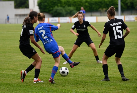 évolue de longue date dans l élite du football Allemand en Bundesliga. Frontaliers, les rouges et noir viennent en voisin à Holtzwihr se mesurer au différents styles de jeux des equipes Françaises , Suisses Italiennes de l'Alsace Women's Cup.@sc_freiburg_frauen